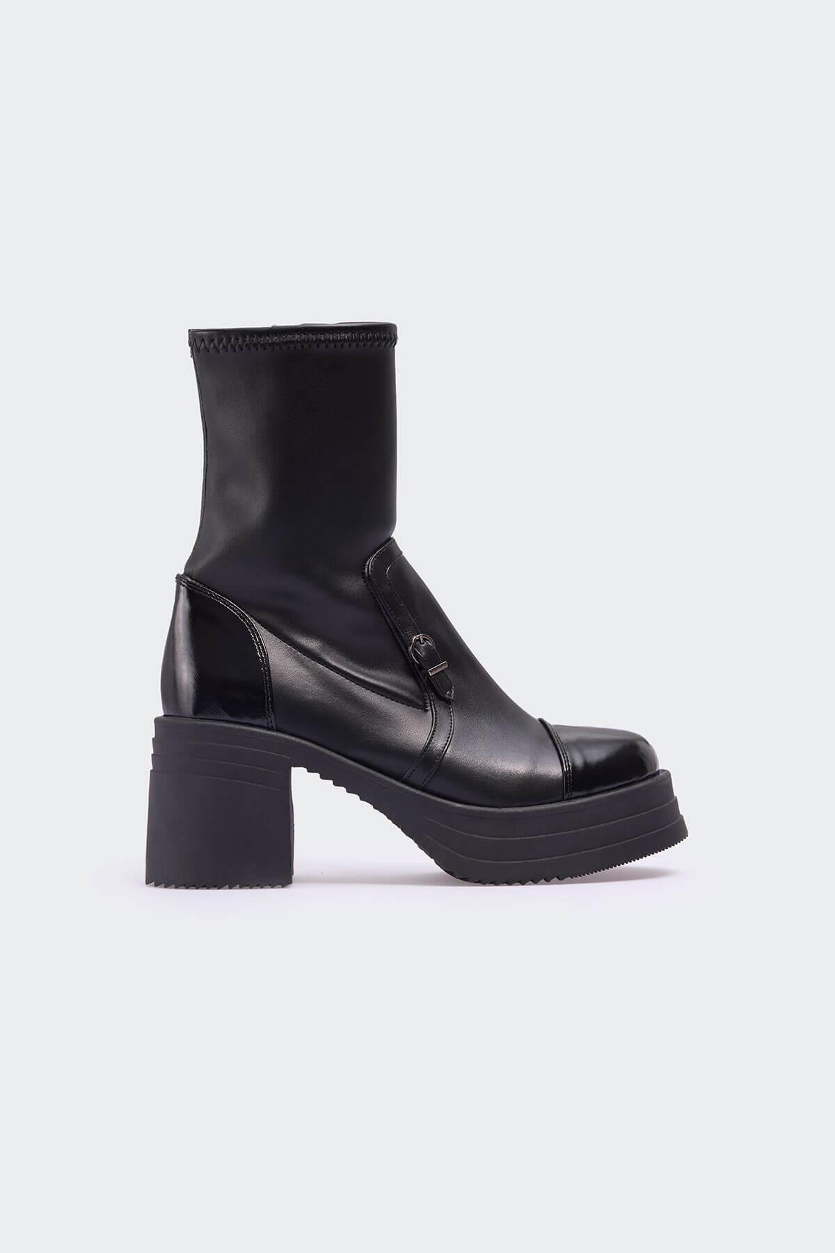 1450 Siyah Kırışık Rugan Siyah Deri Kadın Bot