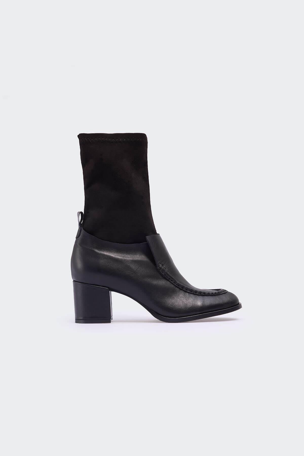 Aminnei Siyah Deri Siyah Süet Kadın Bot